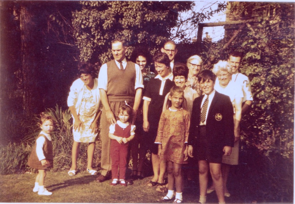 Arthur was a gamekeeper and from time to time the family would meet at the estate where he was working – this photograph dates from around 1969 and was taken in Sutton Scotney, Hampshire. Arthur is the tall gentleman in the sleeveless jumper, with his granddaughter, Sophia, in front of him and Rosamond behind him to the right. From left to right we then have: my mother, my father, Pat Cullingford (mum’s sister), Mildred Howe (my grandmother), Ada Howe and Neville Cullingford (Rosamond’s brother). I am standing in front of Pat next to my cousin, Nick.