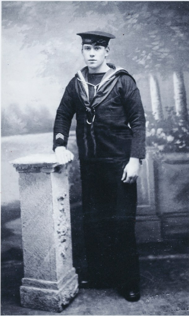 Always known as Jack, grandad was born on 22 October 1899 in Wantisden, Suffolk. No doubt the expectation was that he would spend his life working on the same farm as several generations of his family but in June 1916, at the age of 16, he ran away from home to join the Royal Navy. The photograph below dates from around 1919 and is carefully posed to show off the war service chevrons on his right sleeve.
